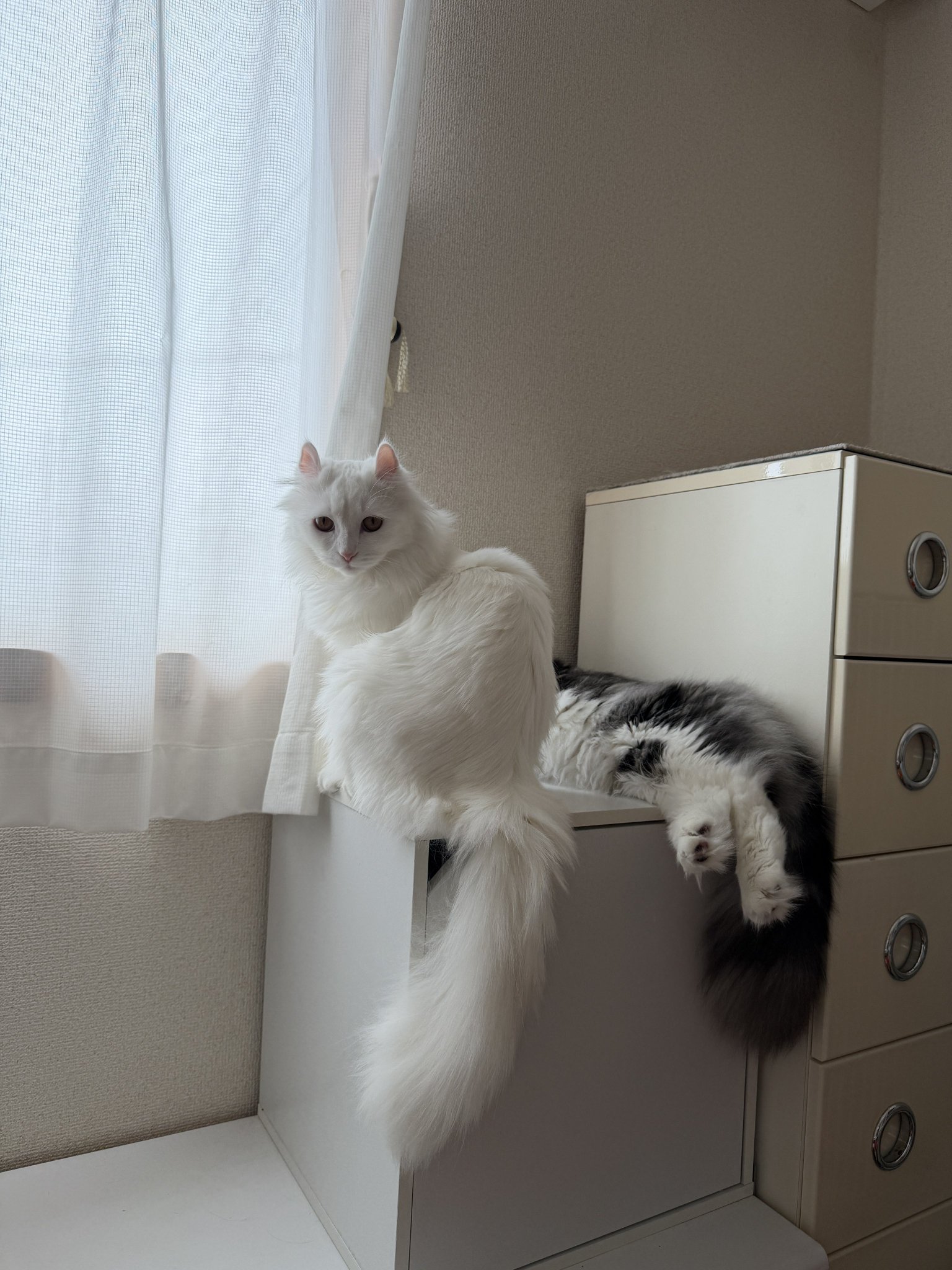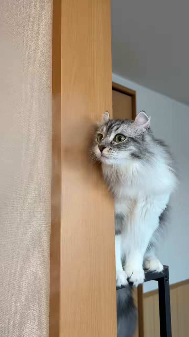 • こちらは靴箱の上に登ってドヤリンゴちゃん。 #cats posted at 21:17