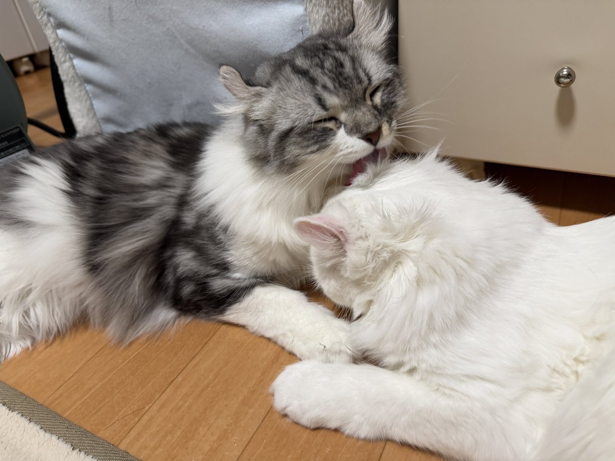 - アン&ロニふたりでタンスの上で一緒に寝てて、アンちゃんが端に寄り過ぎて落ちて壁との隙間に挟まっちゃったので慌てて下から両脚を押し上げてタンスの上に登る手助けをした。(怪我無し)