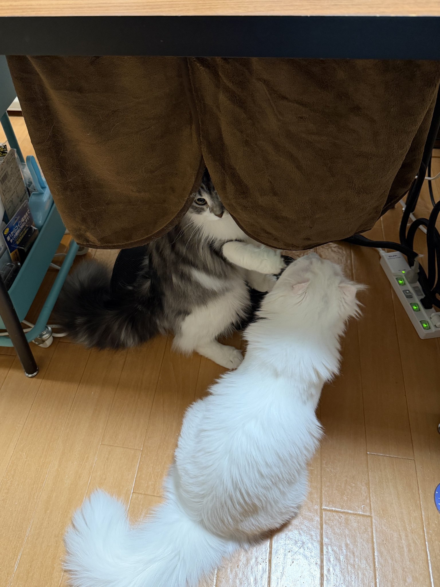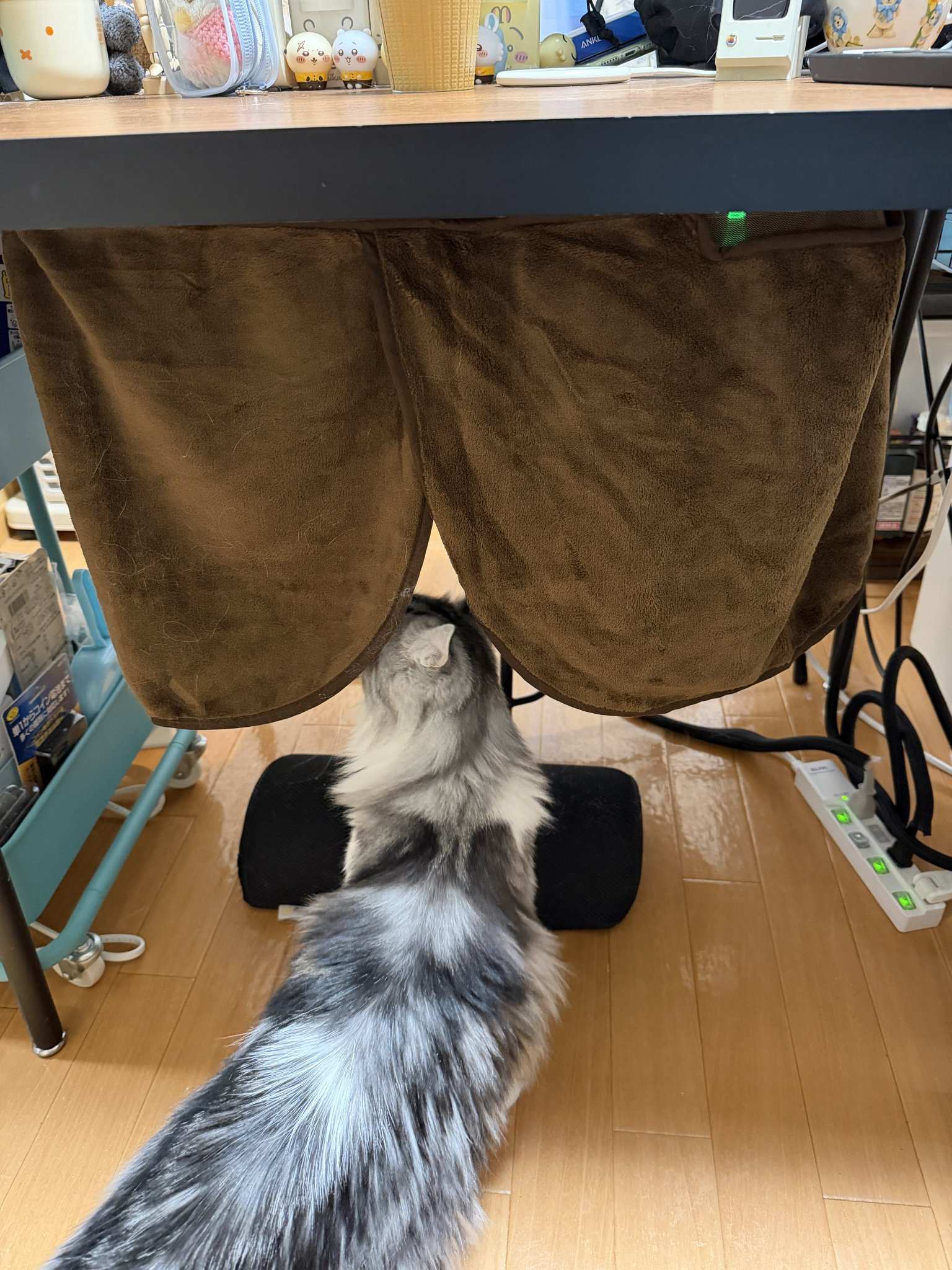 • 最近椅子で作業する事も多くなって来たので、テーブルの裏にマグネットでくっ付けたらコタツ的になるヒーターを買って来た。あったかい!