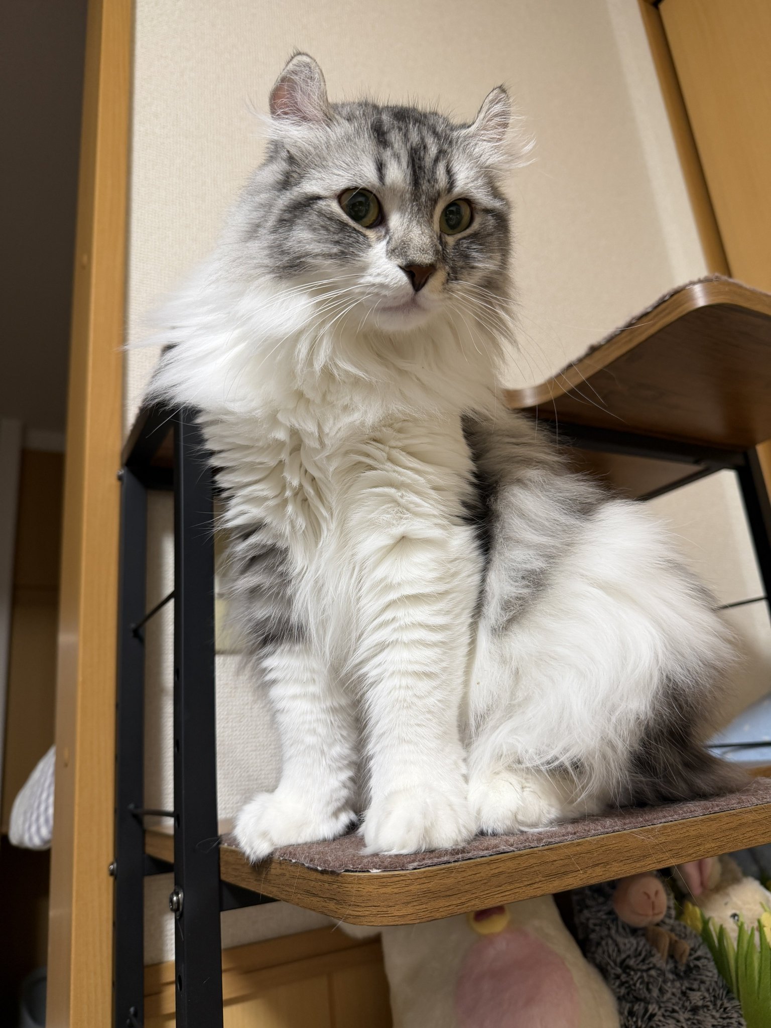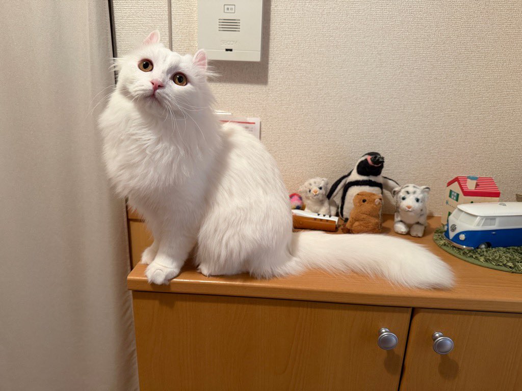 • 寝起き悪い民なのでアラームの曲をド・キ・ド・キモーニングに設定してたら急に音が鳴ったもんでロニちゃんが背びれ立ててやんのかポーズになってしもた!!ごめんて!😅 #cats posted at 01:20