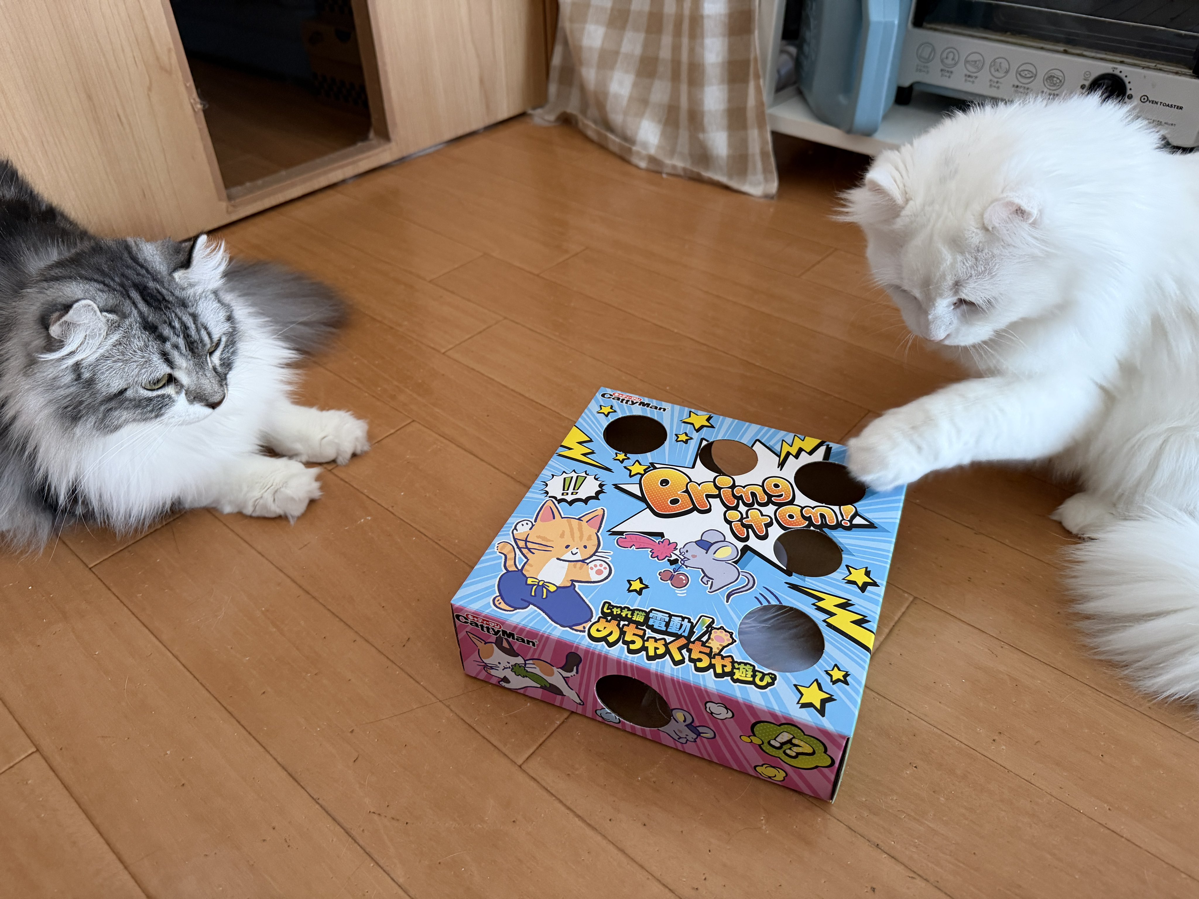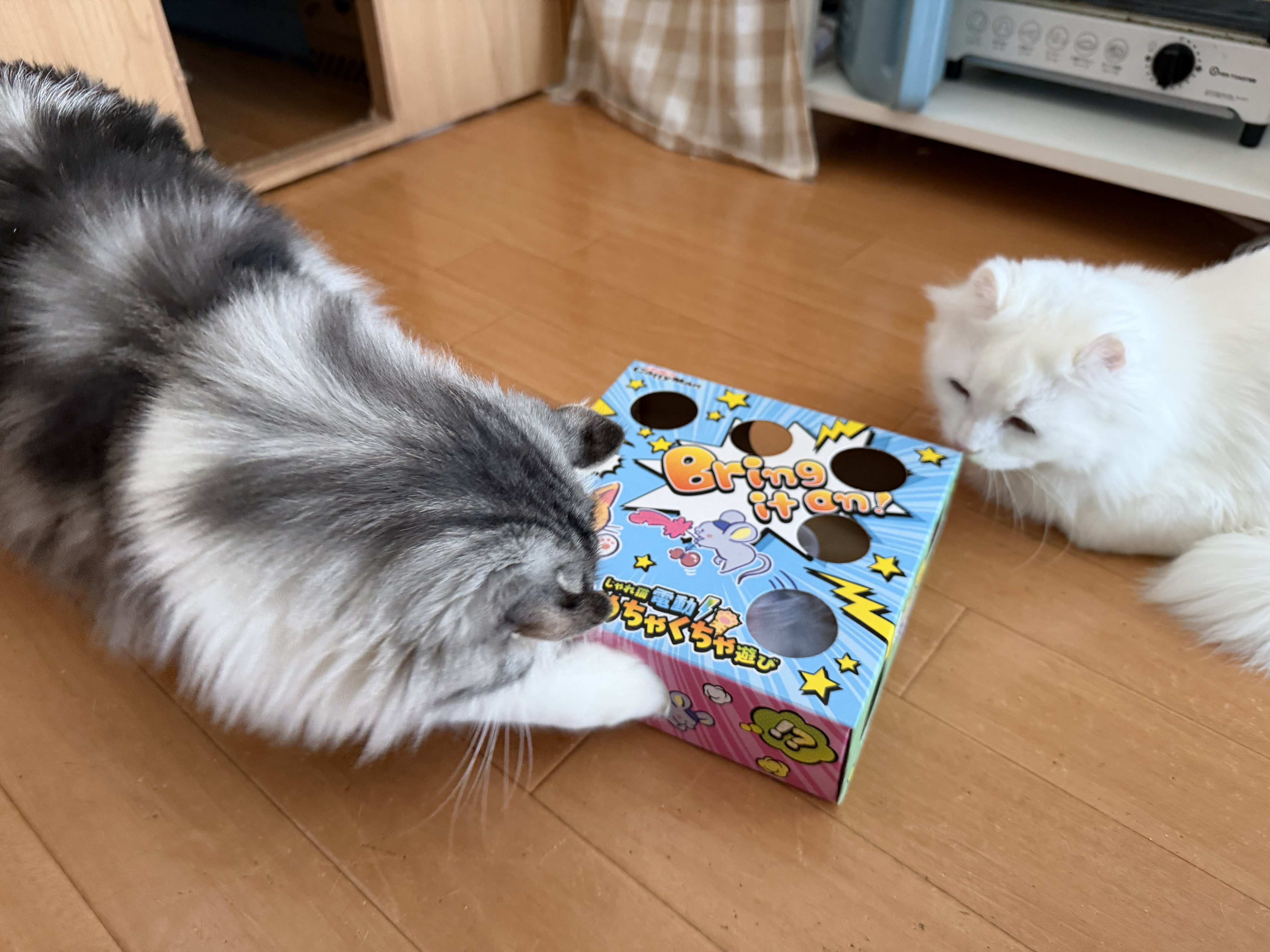 • ホムセンでおもちゃのお土産買って来た。めちゃめちゃウケて良かった良かったw #cats posted at 20:36