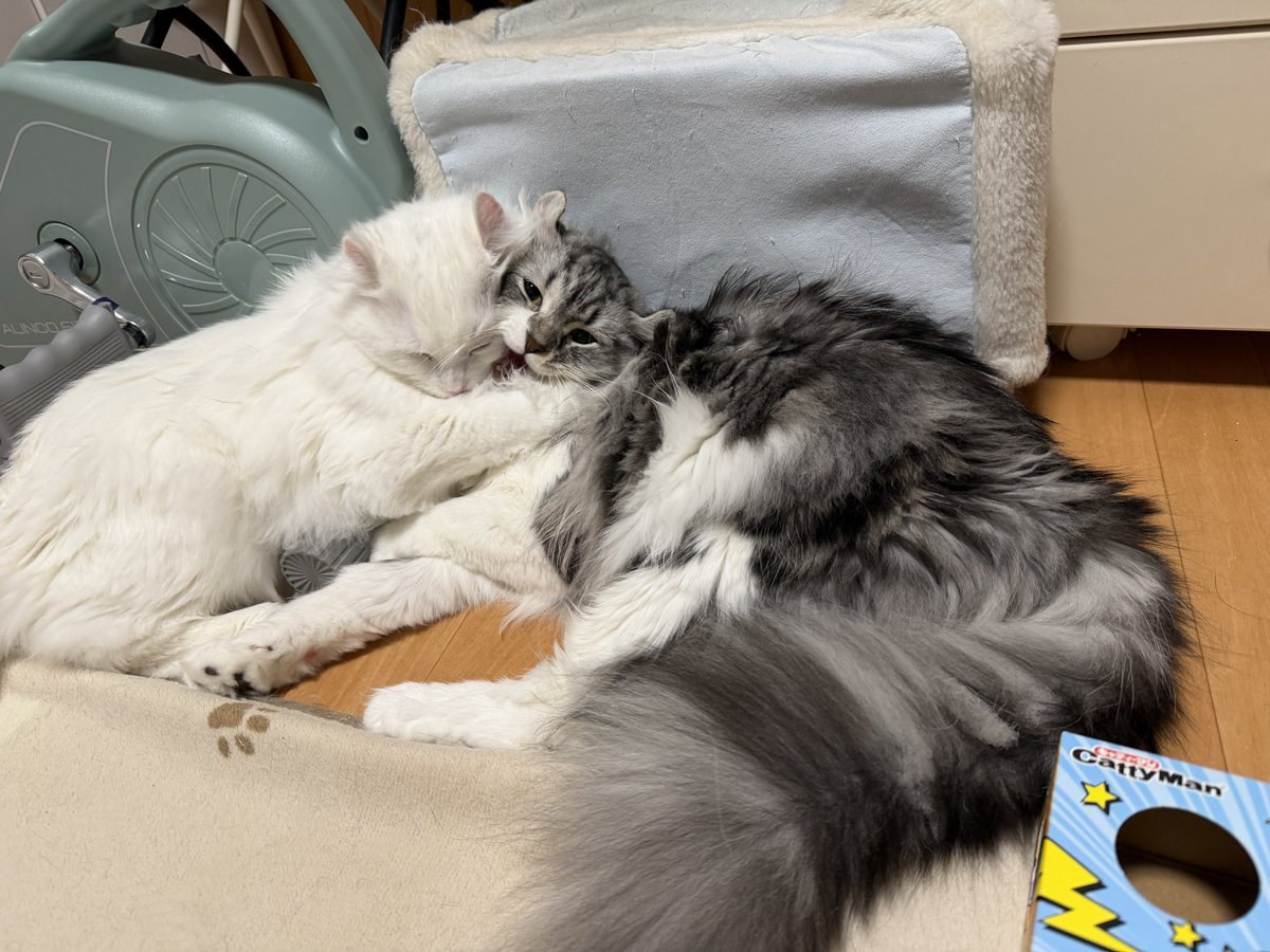 • アン兄、ロニちゃんのほっぺた噛まないのよ〜😅 #cats posted at 20:48
