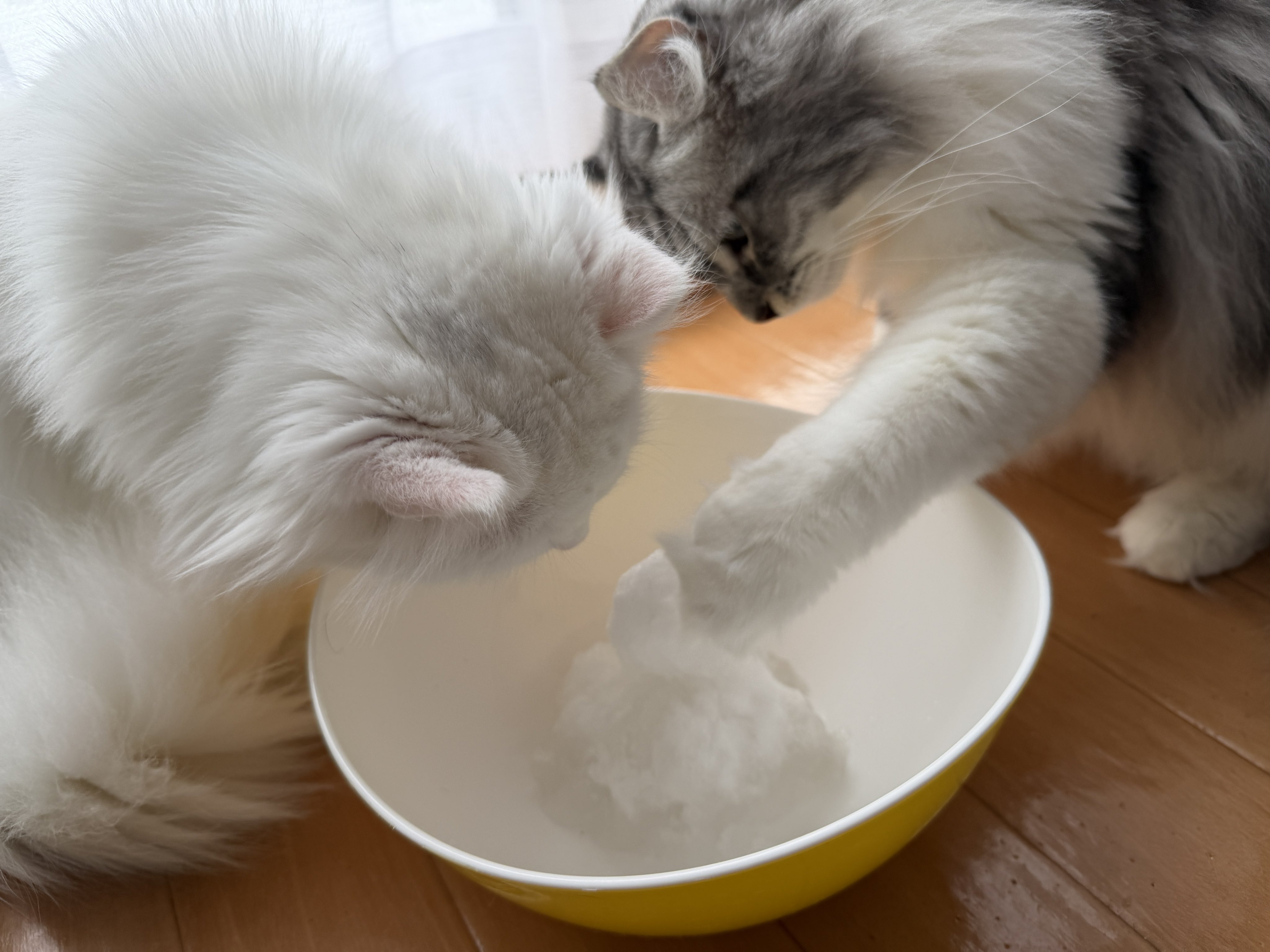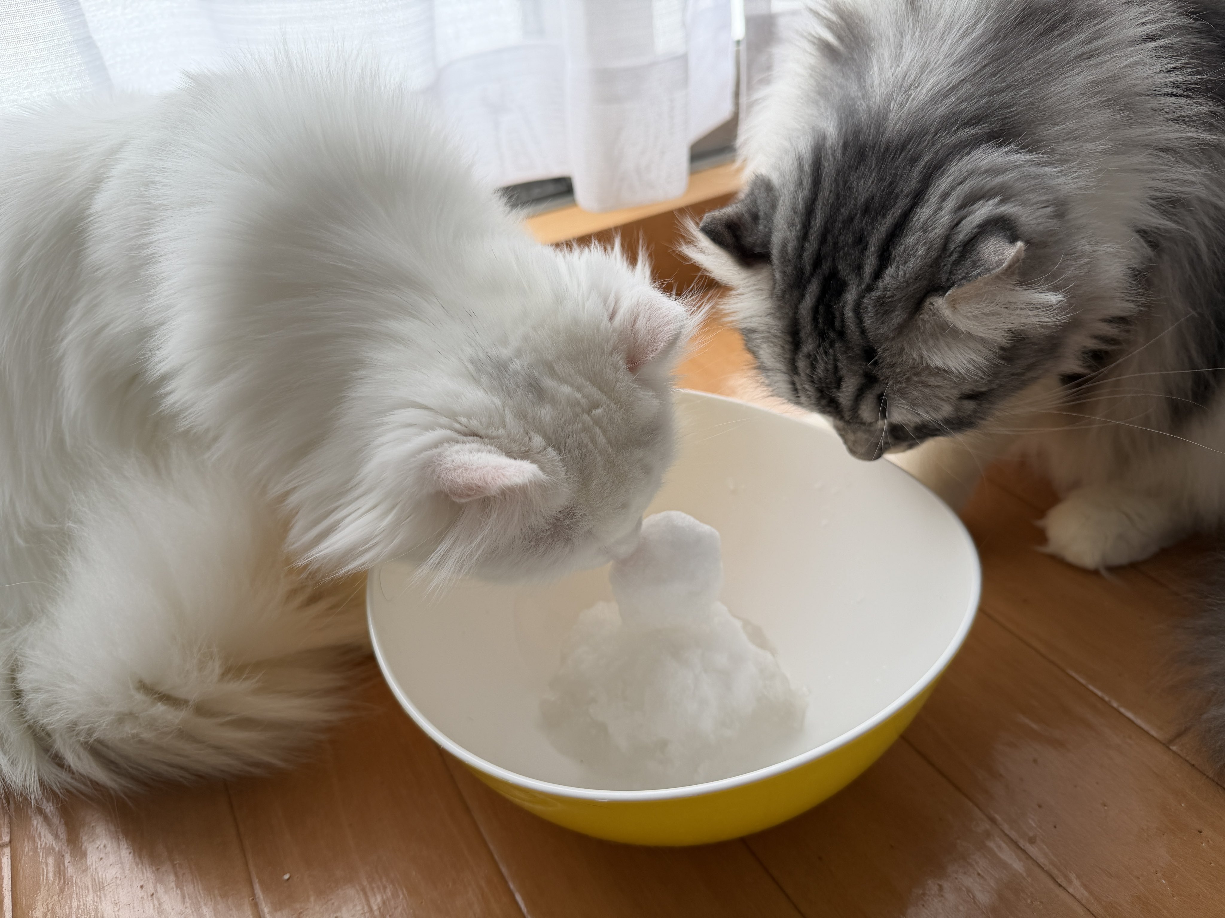 • 雪初めてブラザーズに雪だるまあげてみたらめっちゃ興味津々の図⛄️ ロニちゃん少し食べてたなw #cats posted at 22:19