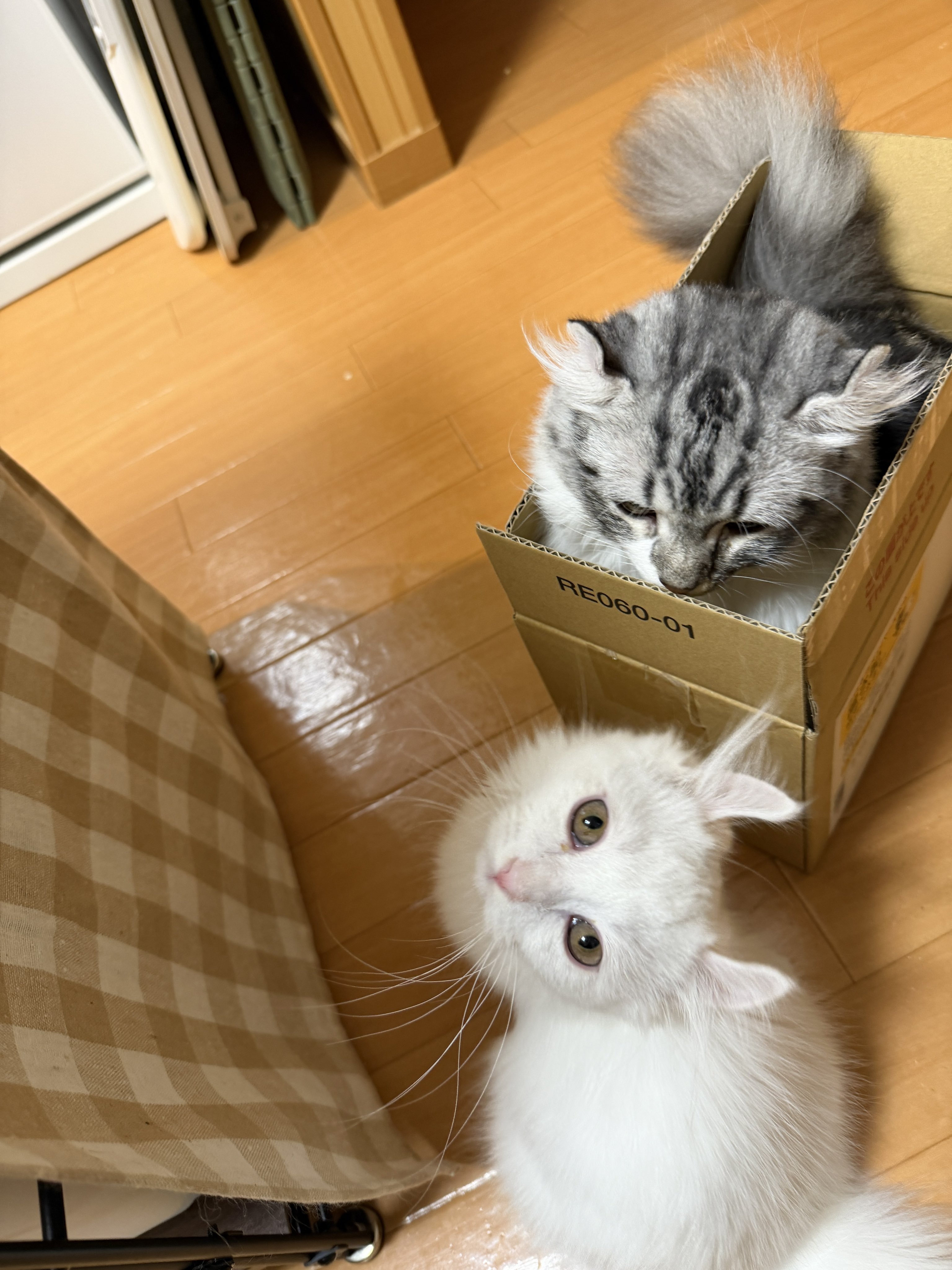 • よくその小っちゃい箱に入れたね?? #cats posted at 22:56