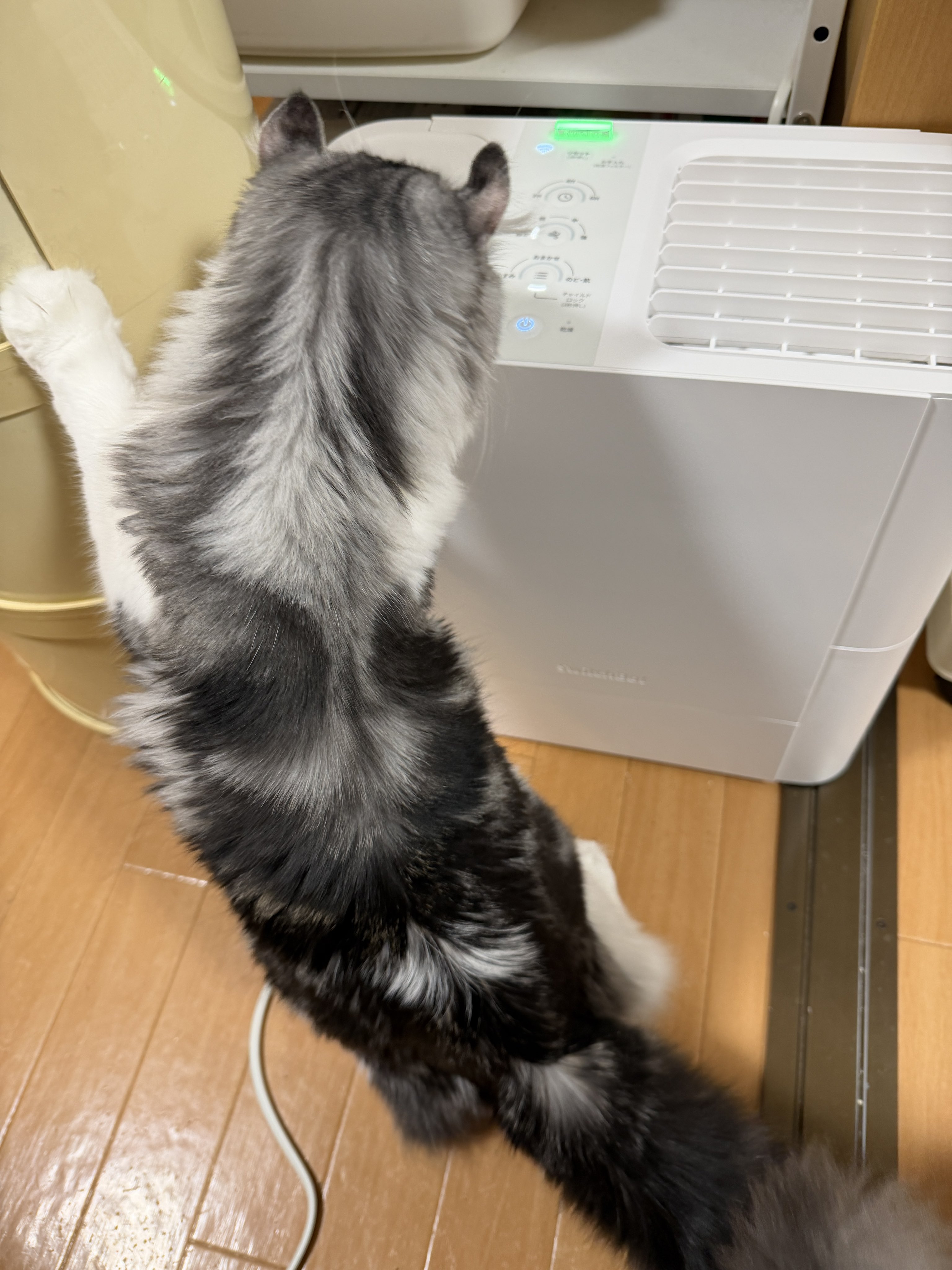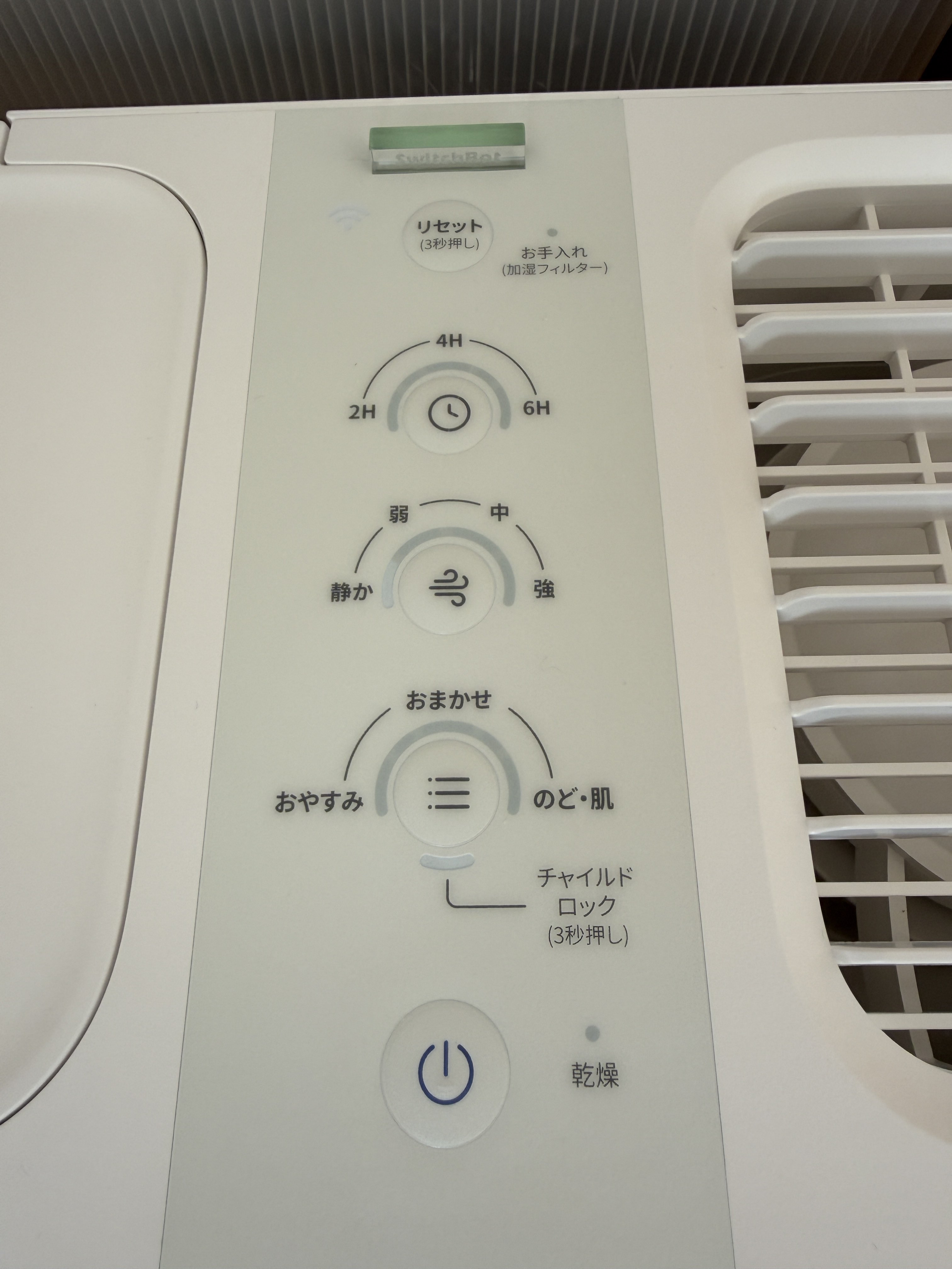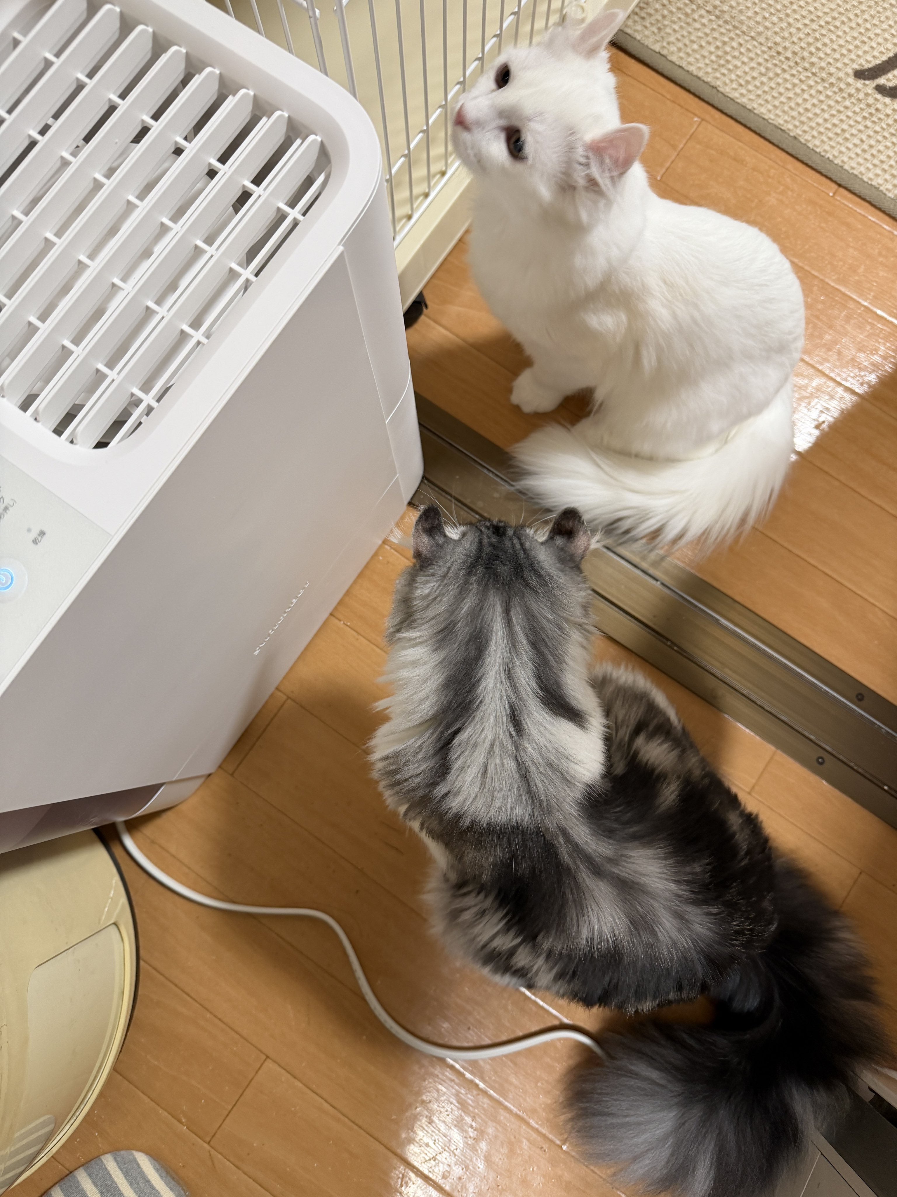 - 前シーズンまではポット擬態型加熱式加湿器が大活躍してたのですが、子猫ズの火傷が怖い&アン太郎の眼やふたりの喉の為に一日中点けておける様にSwitchBotの加湿器を使い始めました。