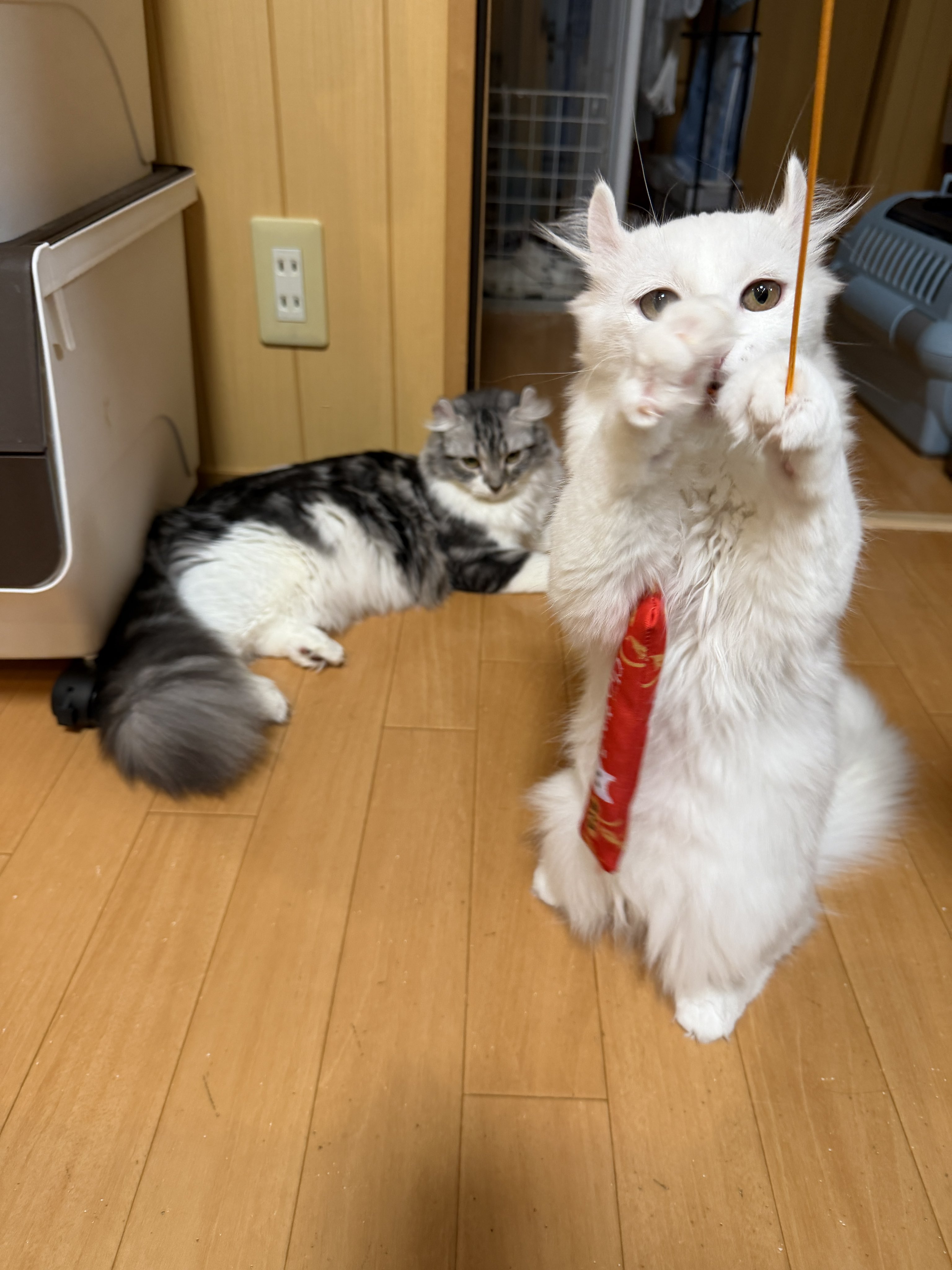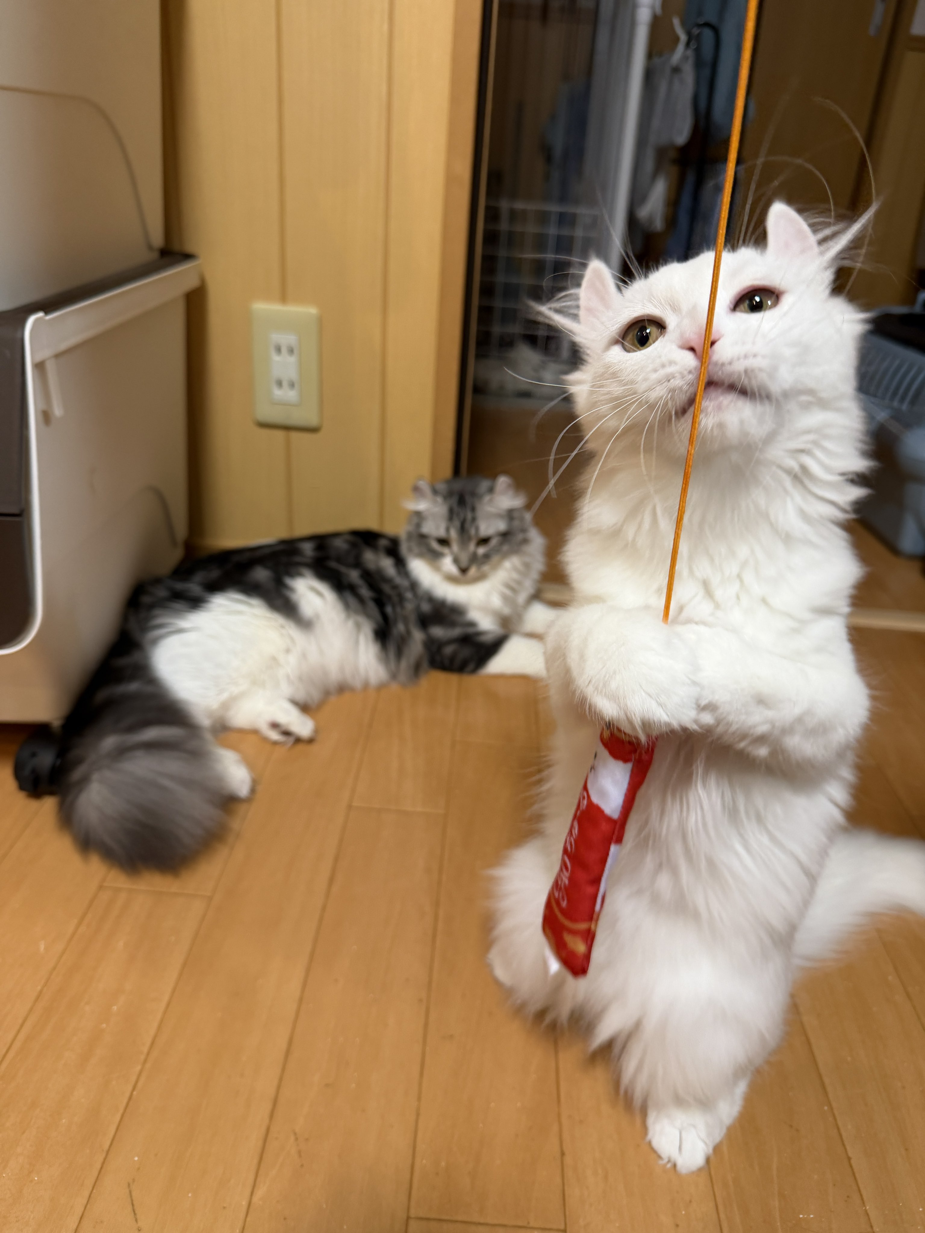 - ちゅ〜るじゃらしでハッスルブラザーズ。 #cats posted at 20:12