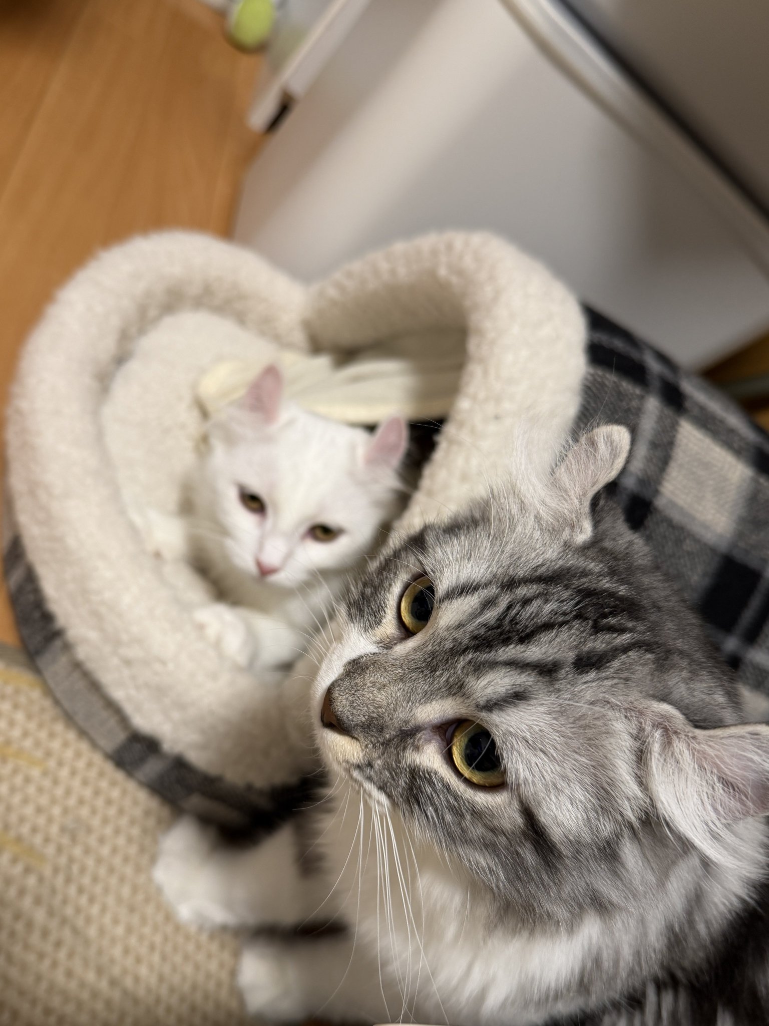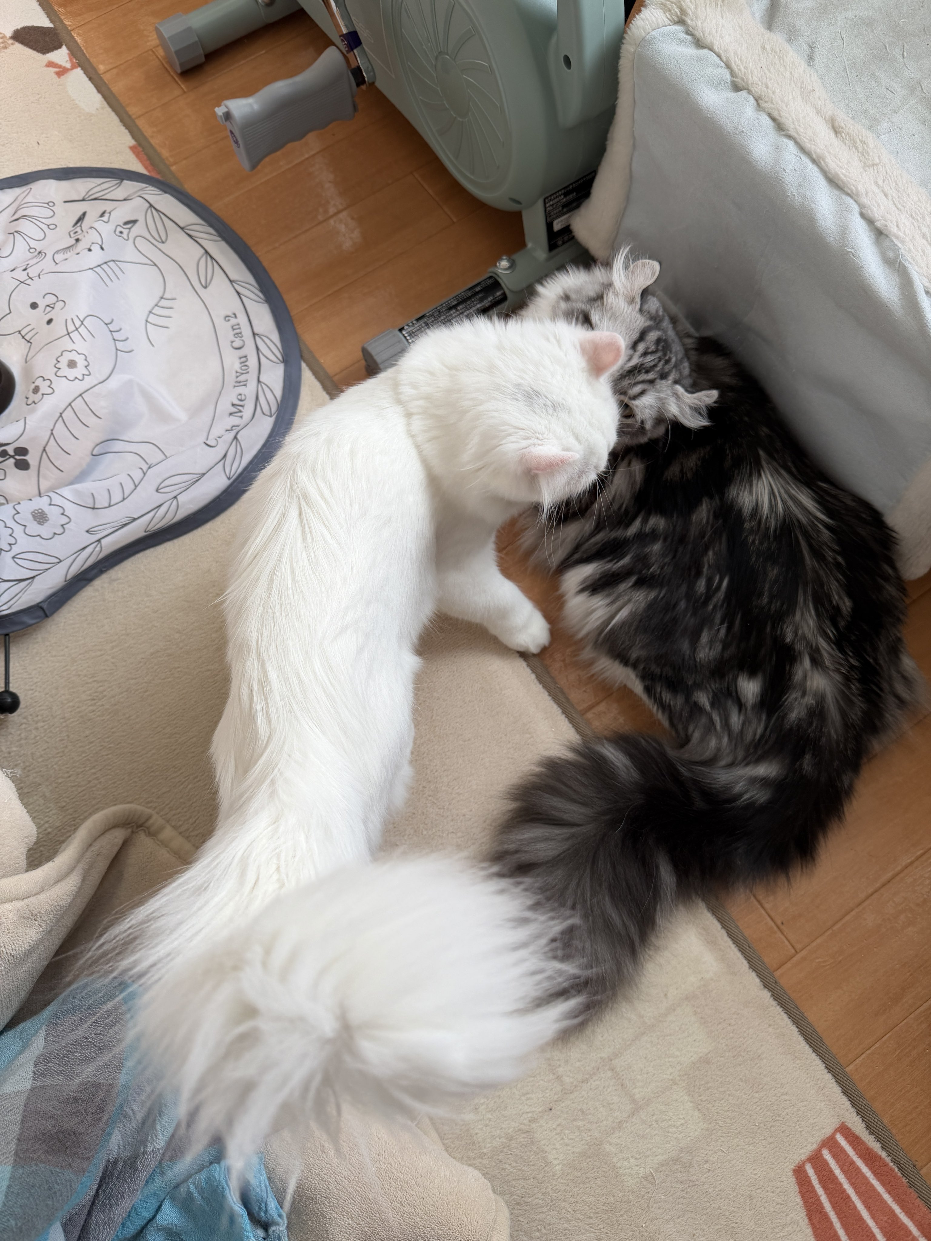 2025-11-29のつぶやき from Twitter 午前中はロニ坊の去勢手術前検査でいつもの病院へ。「筋肉が凄く付いてるので、普段沢山動いてるんですね〜」と褒められた😊 セカオピで他院へ行った事も正直に話したけど、嫌な顔されなくてホッとした。 帰宅して兄ちゃんに甘えるマン。 #cats posted at 12:45 午前中、珍しくひとりだったねぇ。お留守どうもね〜。 #cats posted at 19:57 \強くなれ!/ ハイ #cats posted at 19:59 ロニ坊の体重、病院で測ったのに細かい数字忘れちゃったので家で再計測。2.57㎏。大きくなったねぇ☺️ #cats posted at 20:04 クリックして X で共有 (新しいウィンドウで開きます) X Facebook で共有するにはクリックしてください (新しいウィンドウで開きます) Facebook