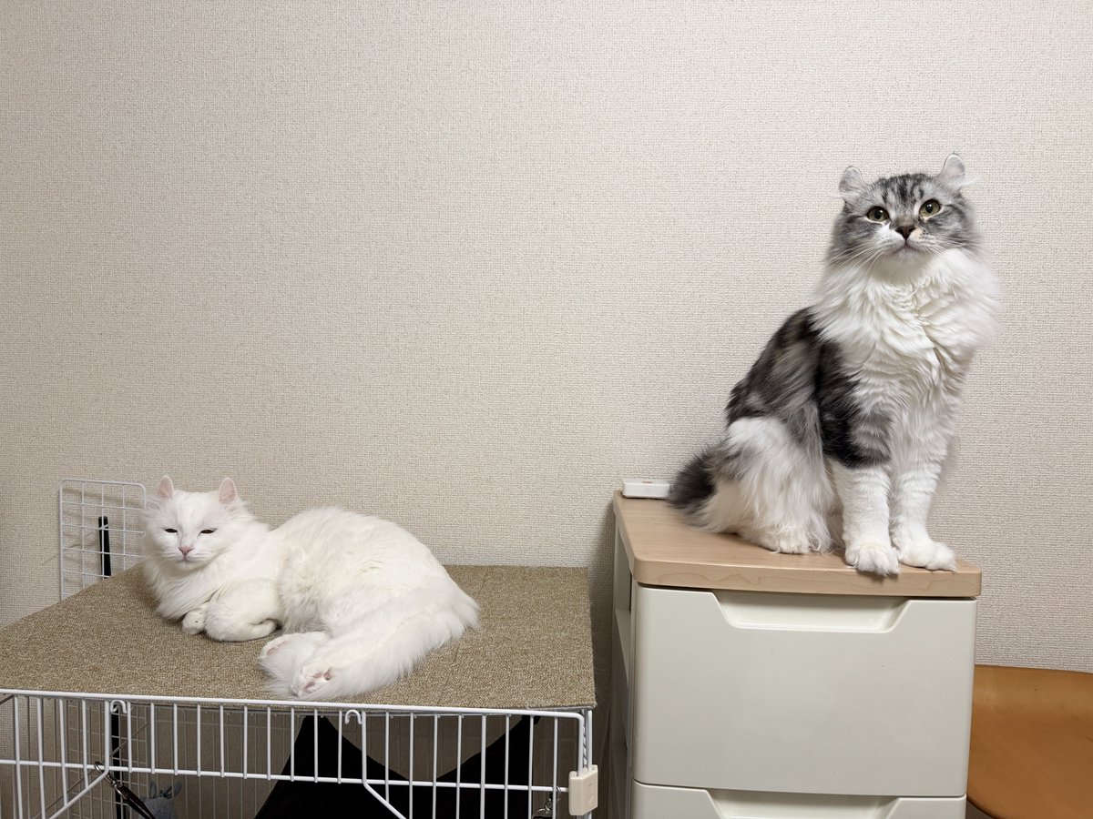 • 寝室に移動したケージも相変わらず人気👍 #cats posted at 21:36