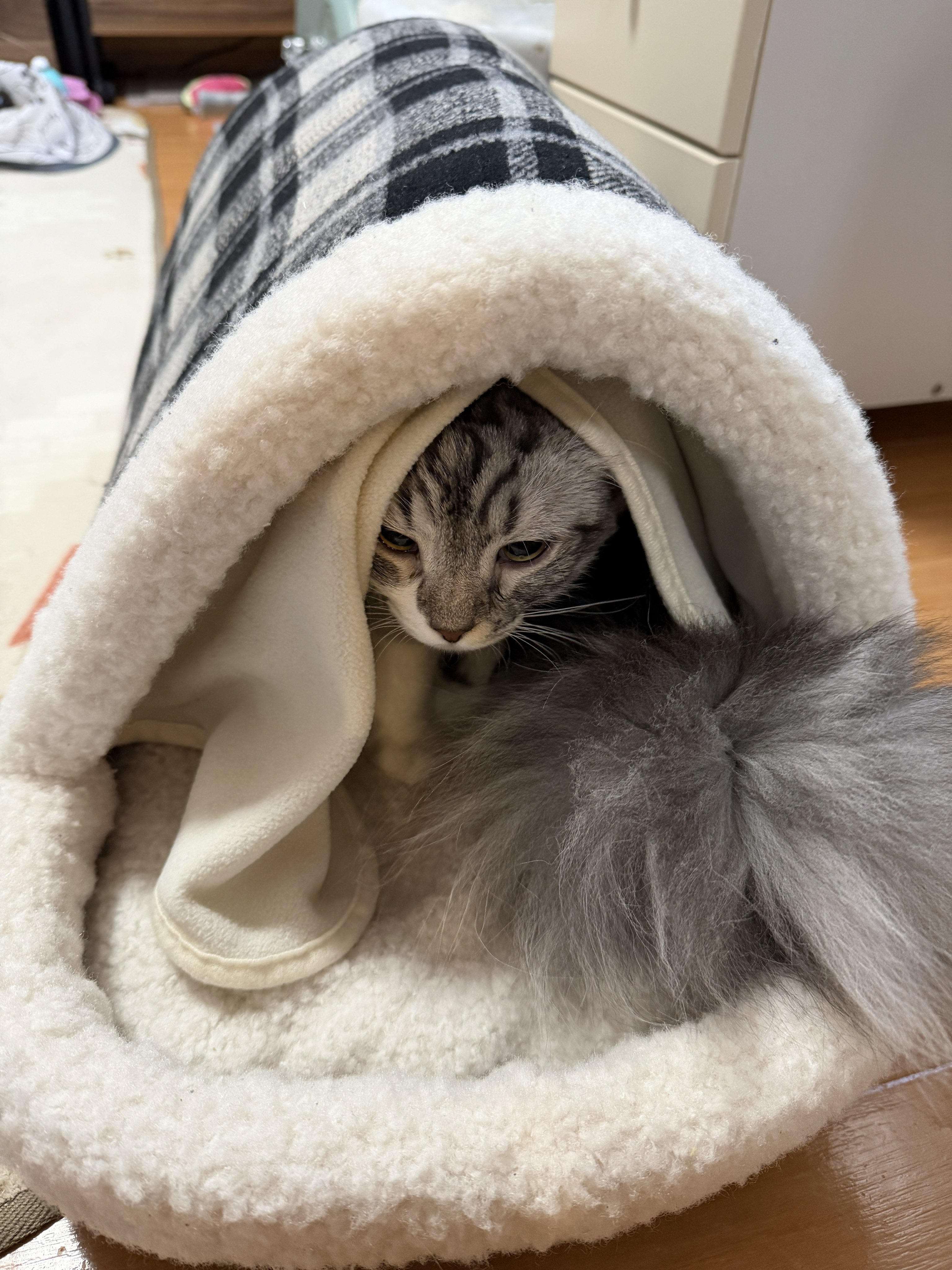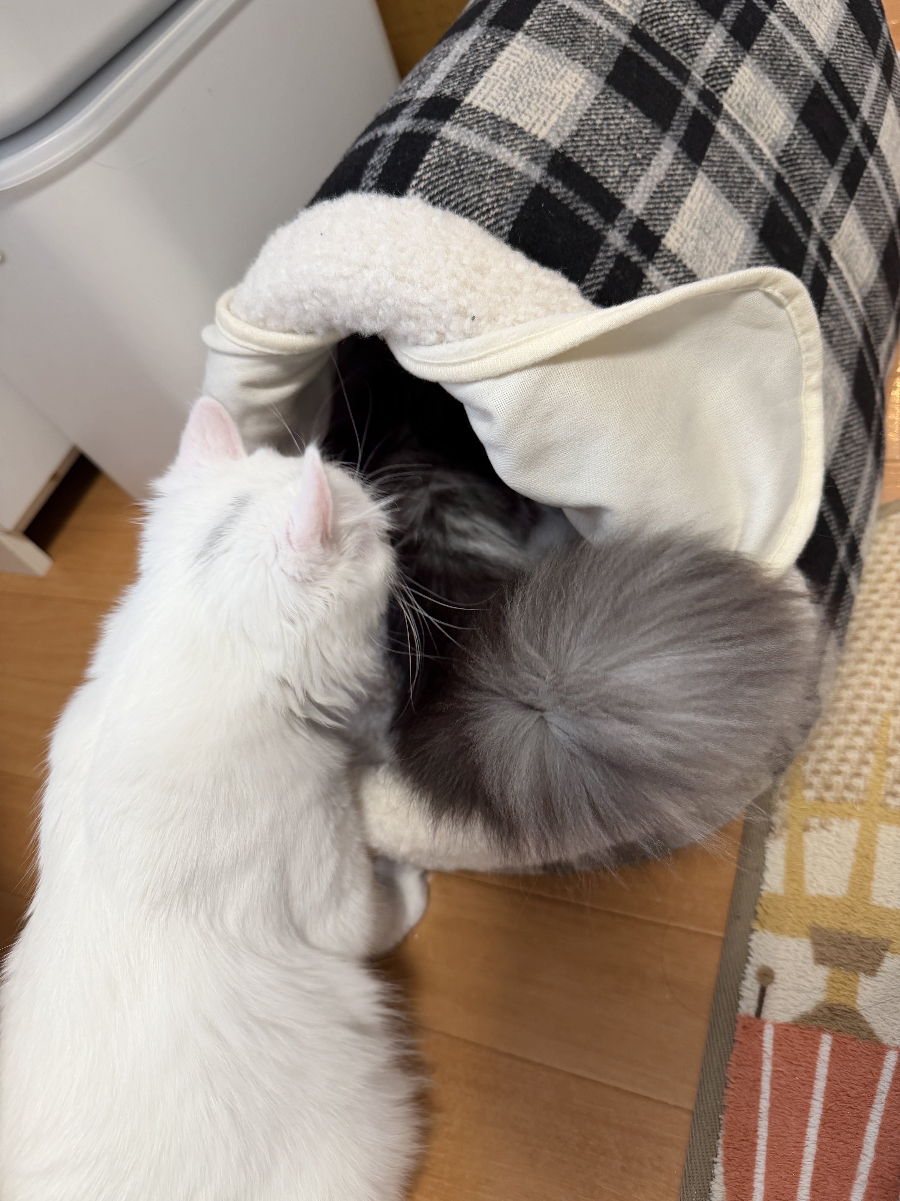 - カインズには保温ベッド見に行って、良さそうなのがあったので試しに一個だけ購入。ふたり入れるかな?と思ったらアン太郎ちゃんひとりでミチミチ。(しかも早速超お気に召してるしw)もう一個買うか。 #cats posted at 15:13