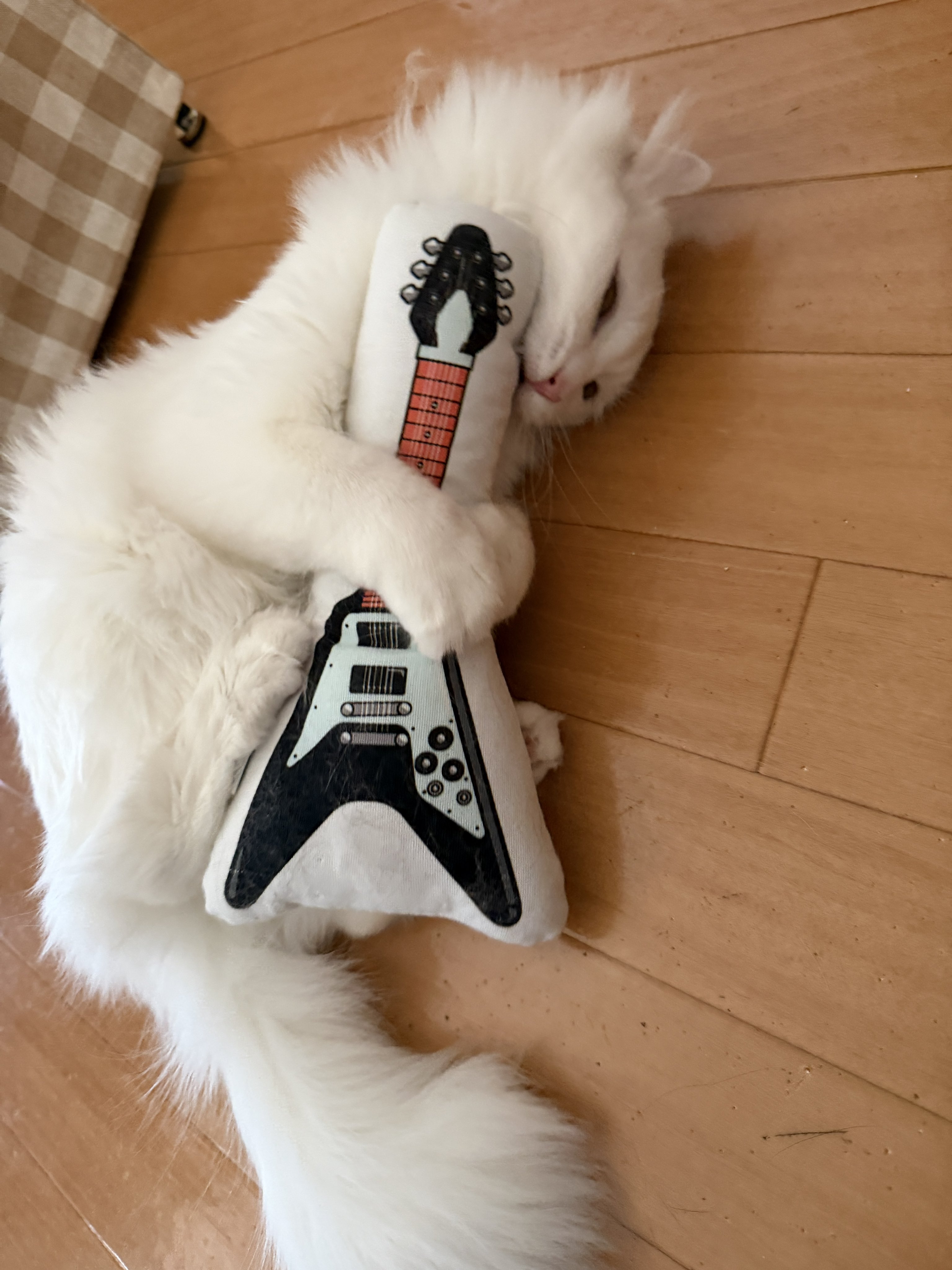 - ロニちゃんもフライングV弾けるよ!歯ギター!背中?弾き! #cats posted at 15:29