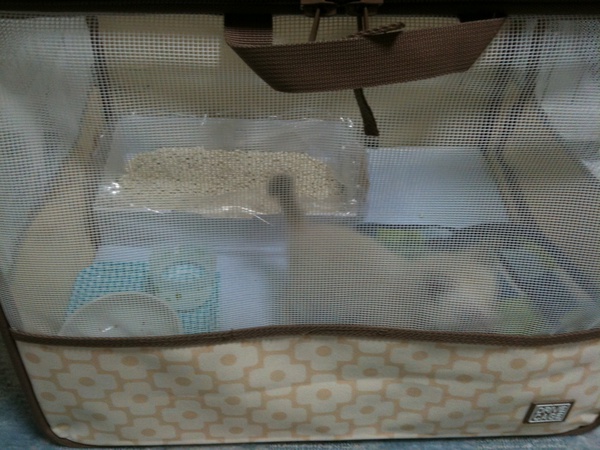 @73chopper ケージすり抜けちゃう程小さいなんて!と昨夜はバタバタしました(^^;; このドライブキャリー、軽くて丈夫で良いですよね♪ アランぽんもお出かけ用に一回り小さいの持ってます(^ ^)