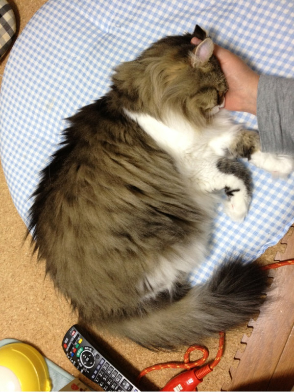 (10:27from ついっぷる Pro for iPhone) - お手々つっかい棒枕 (=´ω`=)…zzZ#cats