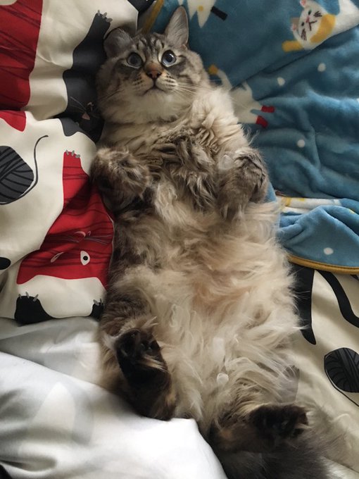 こん〜な格好で横に寝られちゃ〜、寝坊もしますってそりゃ〜(´д`*;) (言い訳大魔王) #cats pic.twitter.com/Jzv7GMkJ9D