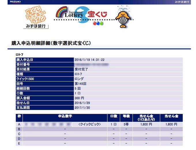 あー!ロト7、5等当たってた〜!6倍1,800円!∩(´∀`)∩(小並感) pic.twitter.com/tl4sWu0hWt