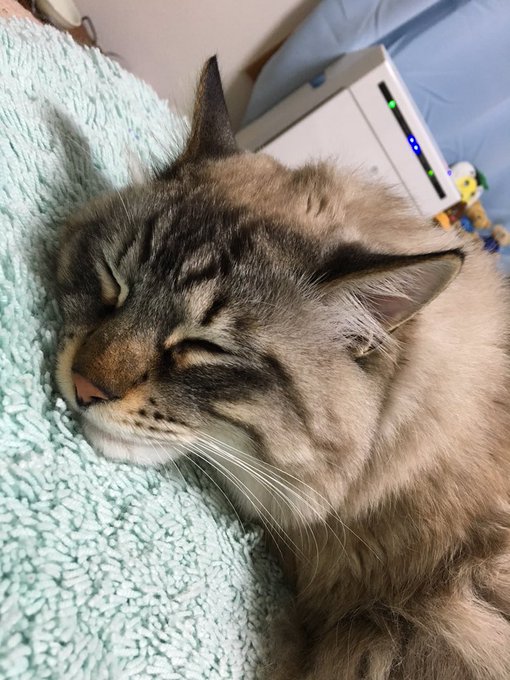 また面白い顔で寝てるw (=´ω`=)・゜・。 #cats pic.twitter.com/wHL16gI0Fs