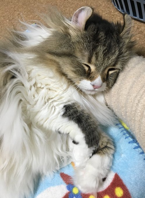 構って貰えるまで執拗に Witness me!!! だったのにハイハイじゃあ遊びましょうね〜モードになると途端に( =˘ω˘ )スヤァ…である。 #cats #MadMax pic.twitter.com/29XXOI2i31