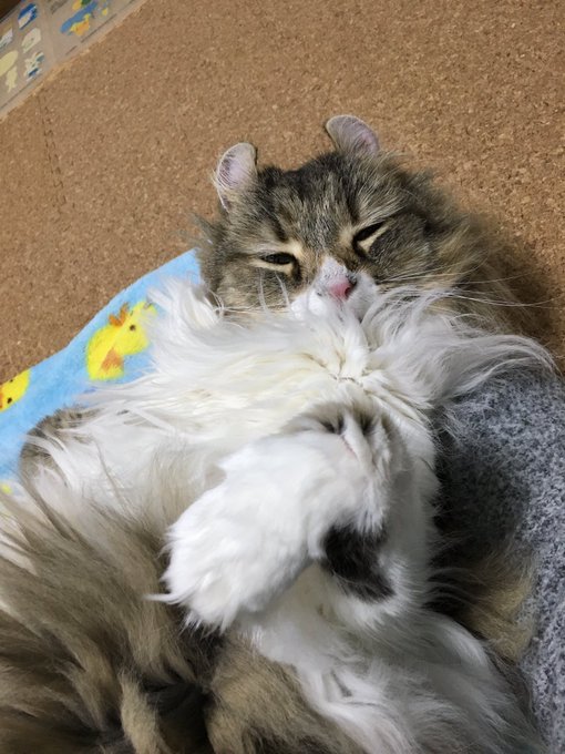 …やっとマシュまろ飽きたみたい…ハイ兄やん…( ;´ω`)っ ( ;=´ω`=)マシュまろさんのヨダレでシットリですニャ…解せぬですニャ… #cats pic.twitter.com/4zO5xZSV3G