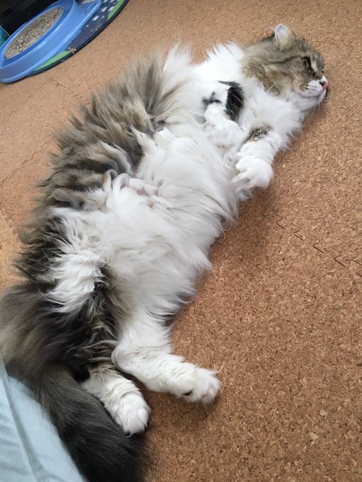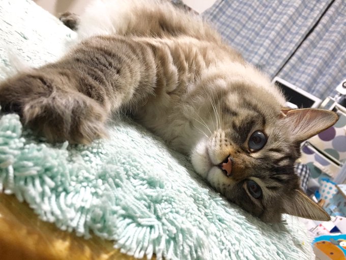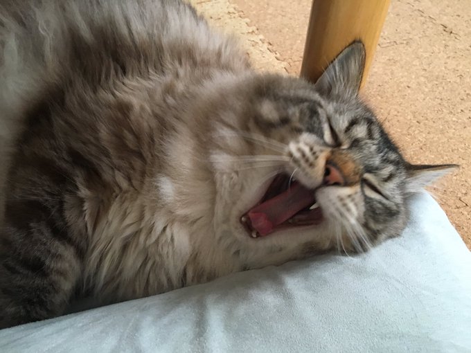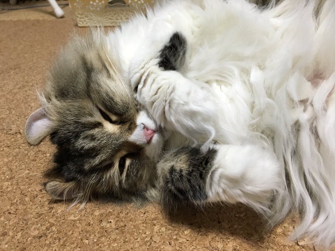 さっきからフガフガしたりゴロンと転がるマシュまろさん。確かに外で何か燃やしてる匂いするね。マタタビ系の枝でも燃やしてるのかな? #cats pic.twitter.com/YSPgpKr2pq