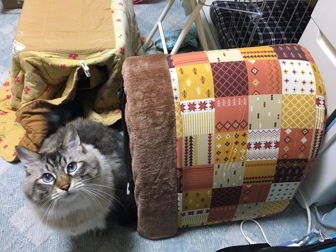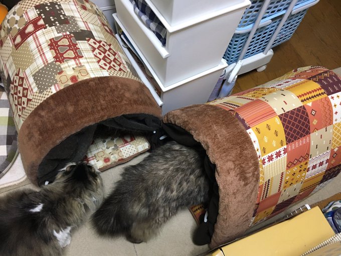 ペピィの猫ベッド届いた!これ、取り合いになる程大人気なので今シーズン買い足しです。早速ホイホイされるふたり(´∀`) #cats pic.twitter.com/juP2zlQIcZ