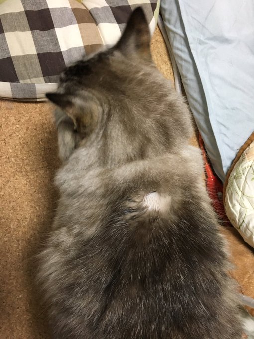 夕方獣医さんへ。点滴を(針を刺す直前までの)準備する練習して来ました。点滴ポイントを分かり易く、と、毛を刈られた肩ッパゲちゃん( ´ ∀ ` ; #cats pic.twitter.com/ubIyyaVN5n