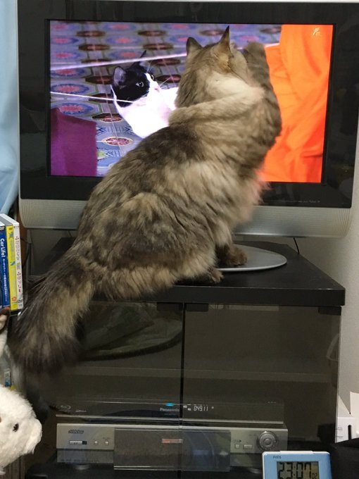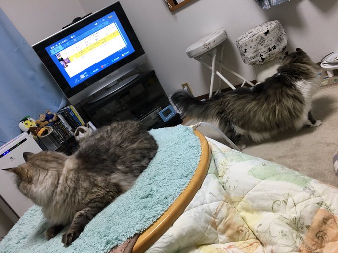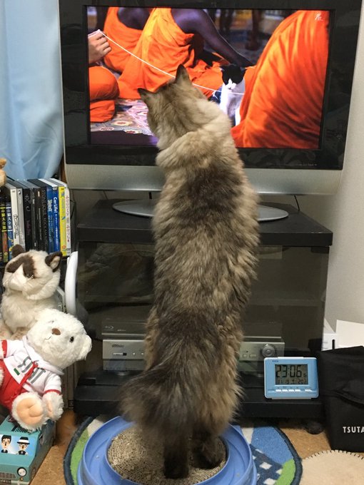 テレビの地震速報のピロンピローン!ていう音が猫達にもトラウマなのは我が家も例に漏れずなのですが、兄やんは画面端の震源地図もどうやらダメらしい。さっきも凝視しているので「わざわざ見んでいいヨ ⊂(´ω` )」とテレビを消した。