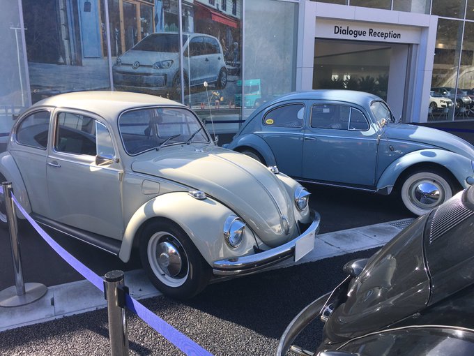 前にお世話になってたVWディーラー移転新店舗お披露目イベントに行って来ますた。新旧沢山のビートルに会えて脳内に幸せ物質フ゛シャー:;::.,*;なう(´ω` *) pic.twitter.com/lkBvte1G6T